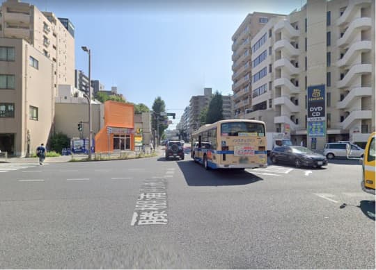 県道21号線まで歩くと、目の前に阪東橋駅が見える交差点がありますので、横断歩道を渡らず、左へ行きましょう。